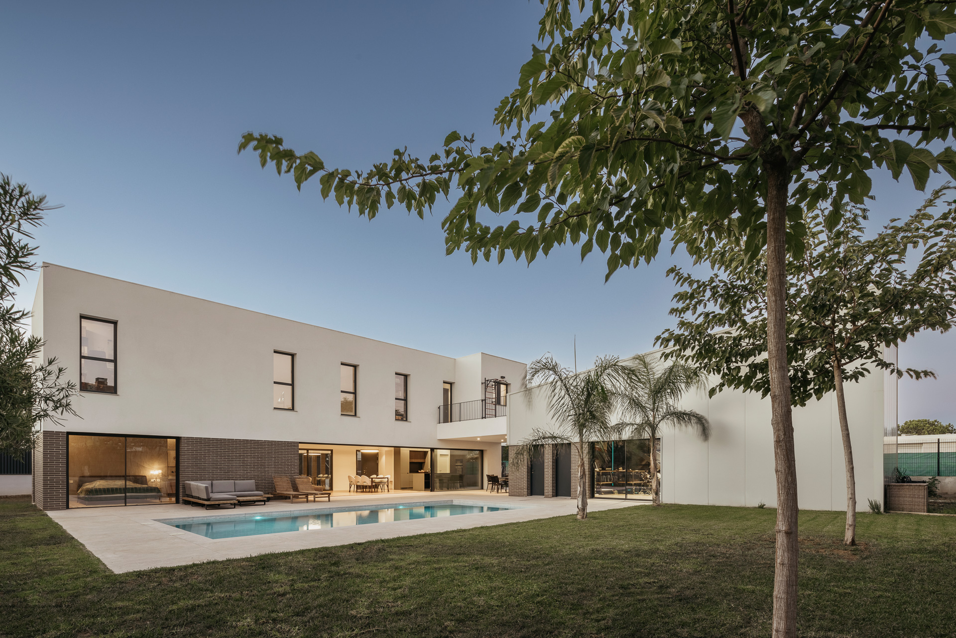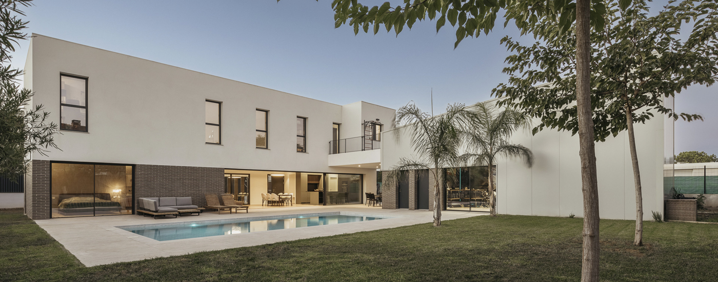La vivienda nace del resultado de introducir unas necesidades de gran superficie de vivienda en un solar en el que los retranqueos a lindes reducen considerablemente la superficie ocupable.